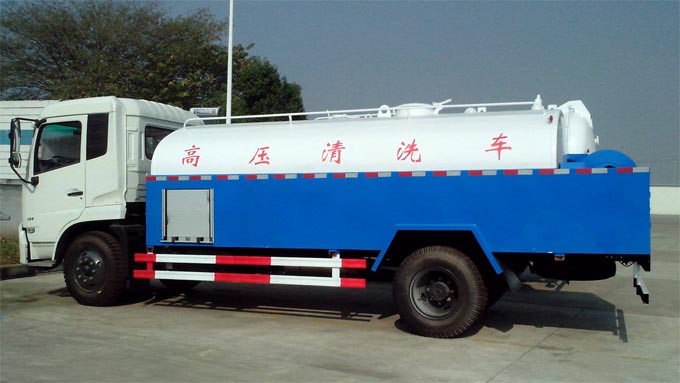 配有高壓水泵的水罐車,清洗城市下水道的沉積物,疏通下水道。也可用于清洗工業排液管道、壁面等,并可兼作灑水、運水和沖洗公路用,緊急時可用于救火。