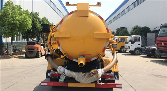 上裝配置:專用部分由取力器、傳動軸、真空吸污泵、壓力罐體、液壓部分,管網系統、真空壓力表、視糞窗、洗手裝置等組成,隨車配置大功率真空吸污泵和優質液壓系統,罐體封頭一次壓鑄成型、罐體可后開、雙頂自卸。罐內污物可通過后蓋直接傾倒,具有真空度高(比吸糞車的吸力更大)、噸位大、效率高、用途更廣泛等特點。油水分離器,水氣分離器,液壓自卸裝置,專用真空吸污泵,容積壓力表,吸物導管,自流閥,真空罐體,連通器(視糞窗),全自動防溢閥,液壓套件。采用國內技術領先的吸污專用泵,吸力大,吸程遠,特別適合用于市政環衛,廠區,礦山,小區等下水道內的淤積物的抽吸、裝運和排卸,尤其是可吸下水道泥漿、淤泥、石子、磚塊等較大物體、含水量較小等物質。抽滿污(糞)罐體時間:≤5min,吸程:≥10m。自吸自排,壽命長,工作速度快,運輸方便。吸污車與吸糞車具有相同原理,但吸污車又與吸糞車有著不同用途。區別就在于吸污車罐體為圓形罐,結構更緊密,可以耐更高壓力提供更大的吸力,可用于收集清理運輸污水,污泥。