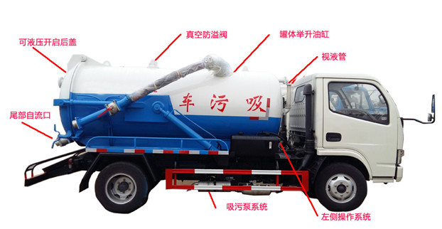 吸污車專用部分由取力器、傳動(dòng)軸、真空吸污泵、壓力罐體、液壓部分,管網(wǎng)系統(tǒng)、真空壓力表、視糞窗、洗手裝置等組成,隨車配置大功率真空吸污泵和優(yōu)質(zhì)液壓系統(tǒng),罐體封頭一次壓鑄成型、罐體可后開、雙頂自卸。罐內(nèi)污物可通過后蓋直接傾倒,具有真空度高(比吸糞車的吸力更大)、噸位大、效率高、用途更廣泛等特點(diǎn)。油水分離器,水氣分離器,液壓自卸裝置,專用真空吸污泵,容積壓力表,吸物導(dǎo)管,自流閥,真空罐體,連通器(視糞窗),全自動(dòng)防溢閥,液壓套件。