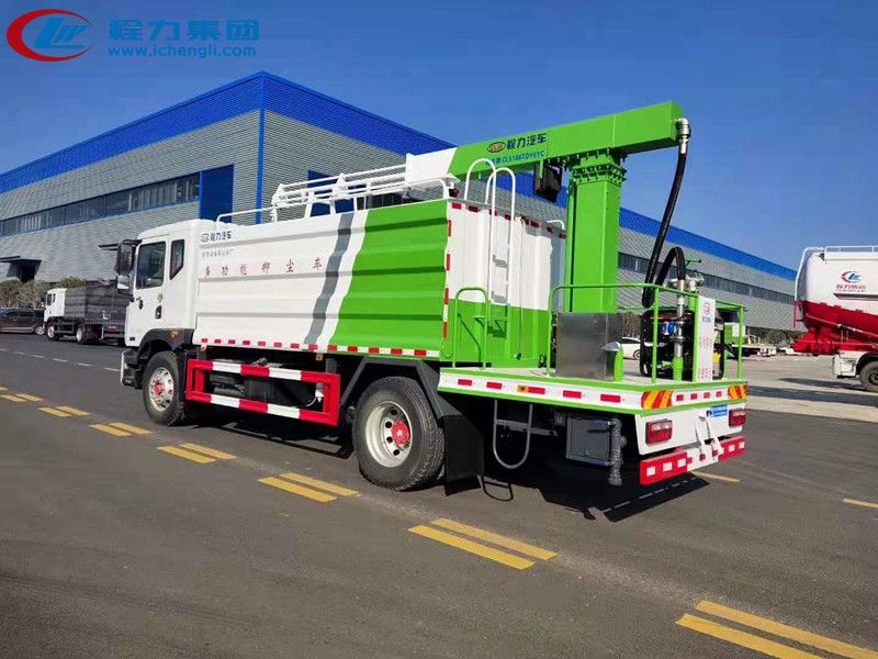上裝配置:罐體容積:15立方,罐體內部做防腐,帶加熱功能,前沖、后灑、側噴、高炮,抑塵噴灑桿(帶旋轉伸縮功能),噴灑桿離地3-4米 。后部平臺帶8KW副發電機組,罐體內部加兩個1.5KW電動馬達(帶攪拌功能),平臺和噴灑桿藍色。遙控操作噴灑桿上下左右旋轉,國內知名品牌回轉支撐,大品牌油缸。