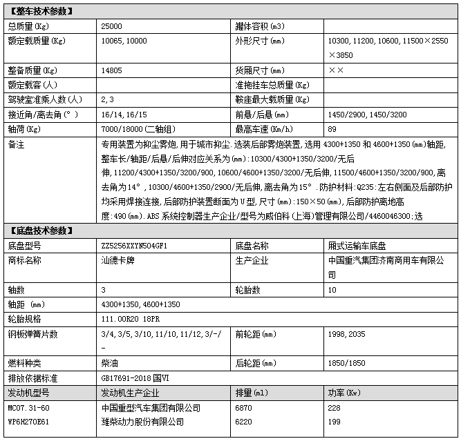 上裝配置:罐體容積:18立方,方形罐體,罐體鋼板采用Q235碳鋼鋼材制作,鋼板厚度5mm,配大功率專用灑水車泵,帶前沖、后灑、側(cè)噴功能,尾部帶工作平臺,平臺上安裝綠化高炮和風(fēng)筒式霧炮機(霧炮可用于農(nóng)藥噴灑、多功能抑塵等功能),帶柴油副發(fā)電機組,操控方式:手動/無線遙控器(遙控距離100米),帶消防接口,自流閥、可自吸自排,該車輛結(jié)構(gòu)緊湊,布局合理,部件做工精細(xì),產(chǎn)品配置完善,操作性能好。后平臺可選裝50-60米、60-70米、80米、100米、120米霧炮機組;其他標(biāo)配。